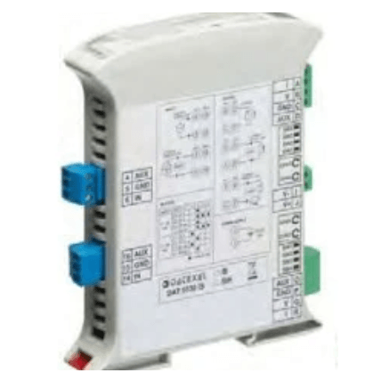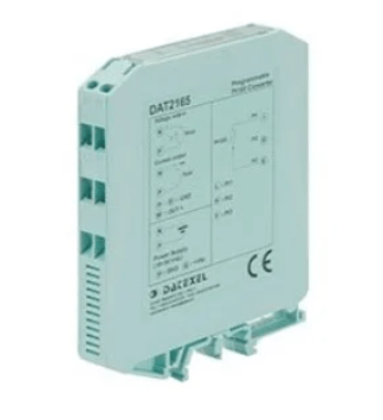 Acondicionador de señal Marca DATEXEL Mod. DAT 5021, Alimentación 18..30 Vcc, temperatura operativa -20..+70 ºC, entrada programable 0-10 V, 2-10 V, 0-5 V, 1-5 V, 0-20 mA, 4-20 mA. Salida programable 0-10 V, 2-10 V, 0-5 V, 1-5 V, 0-20 mA, 4-20 mA por llave Dip. Este modelo NO TIENE entradas para Potenciómetro y Resistencia.